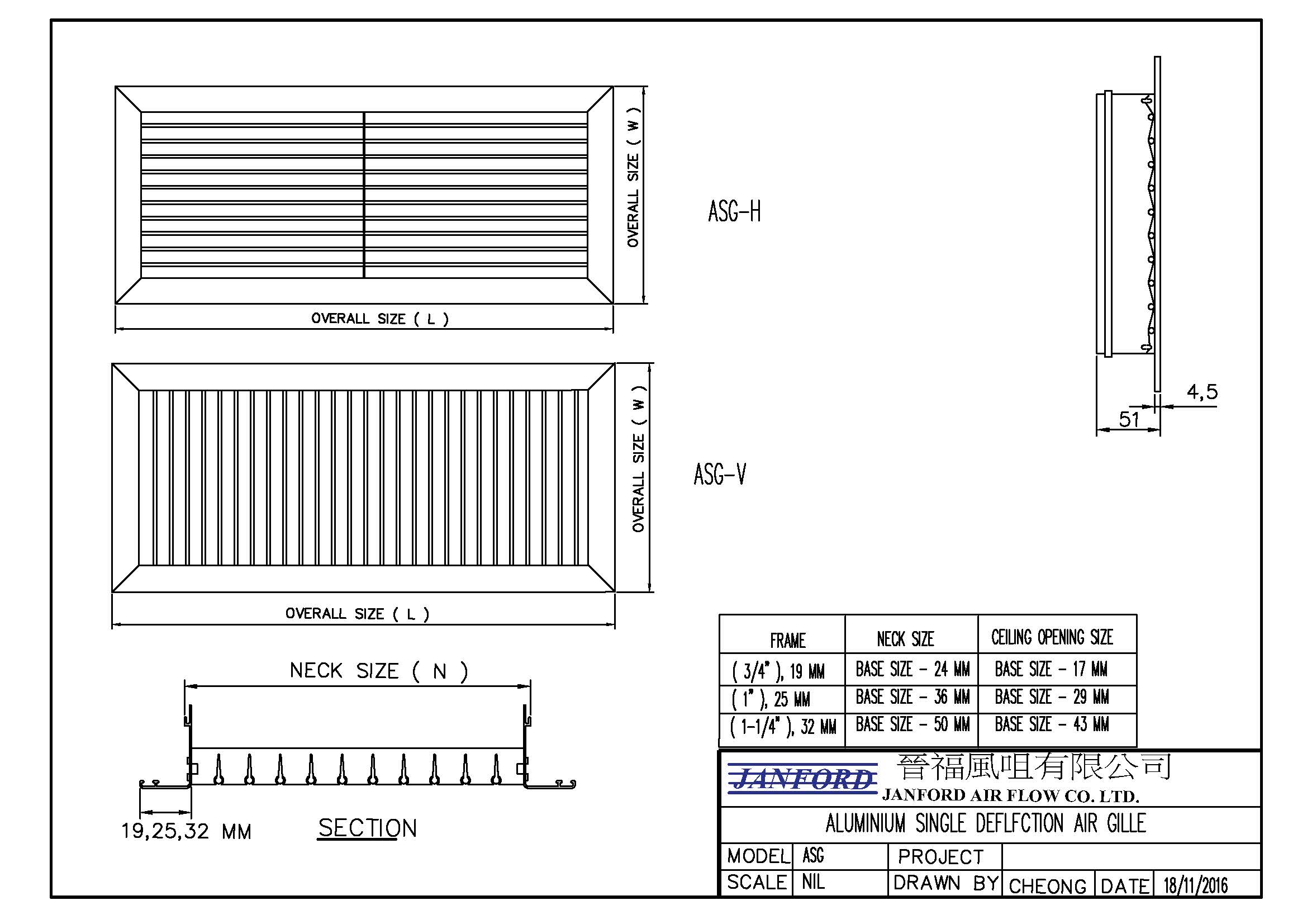 ASG-V : 鋁合金單層百葉,葉片垂直安放。