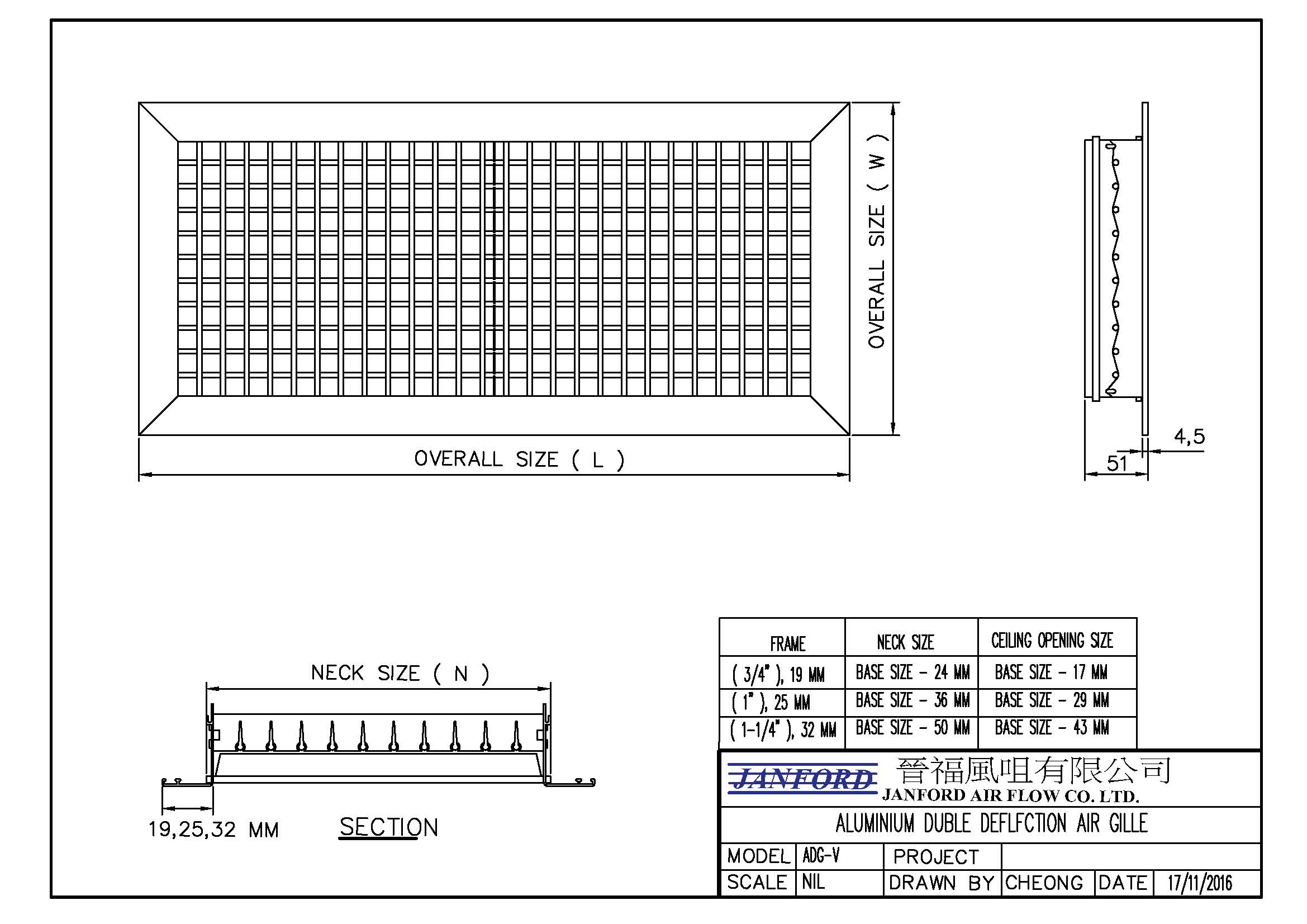 ADG-V : 鋁合金雙層百葉,葉片前排垂直,後排水平。